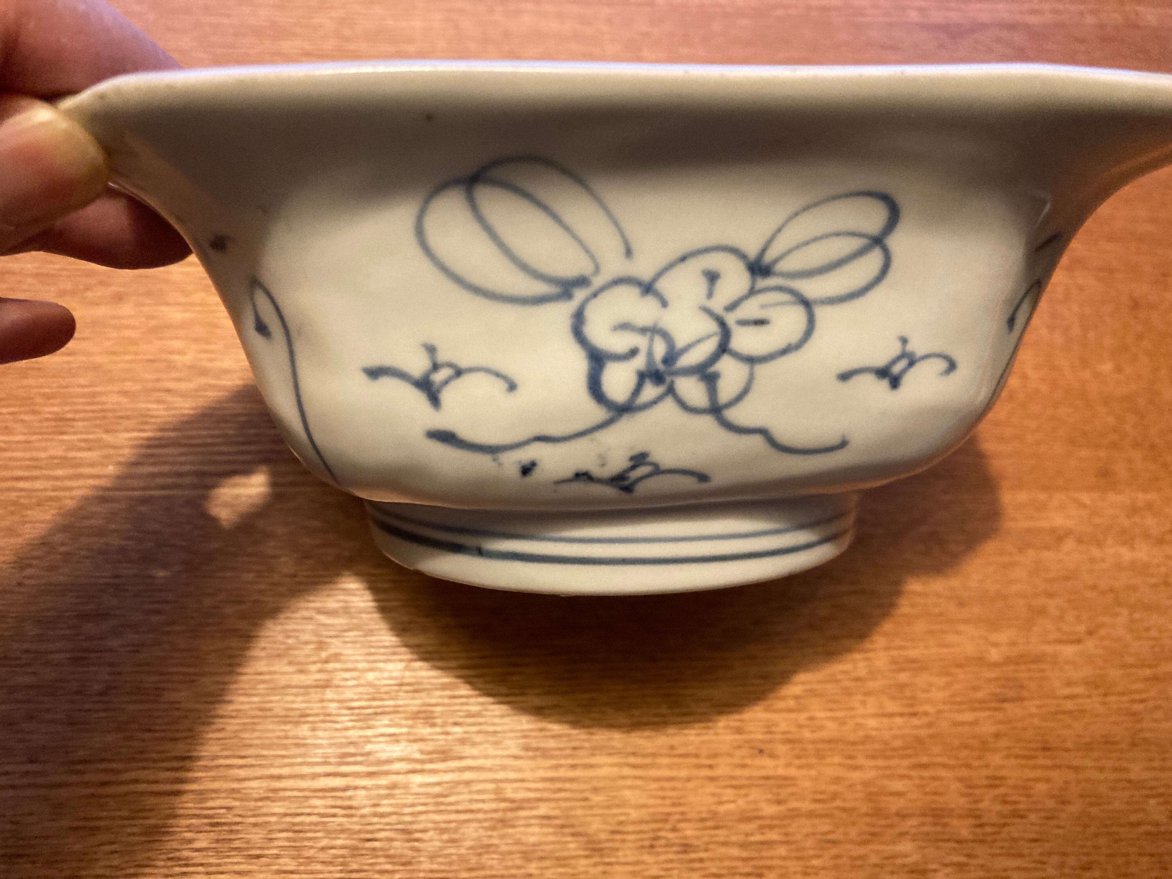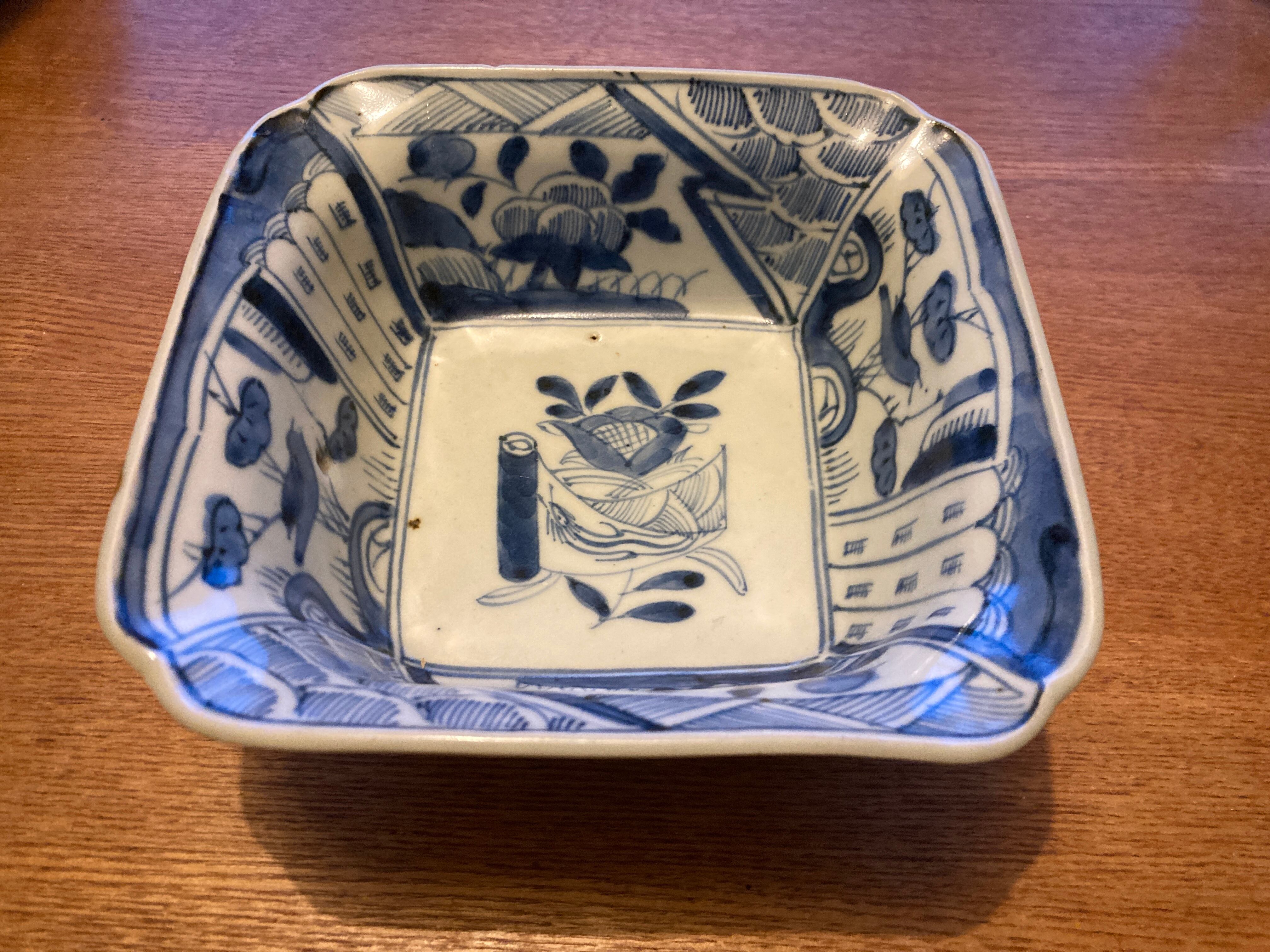 伊万里染付の角鉢です。江戸後期のお品物と思われます。