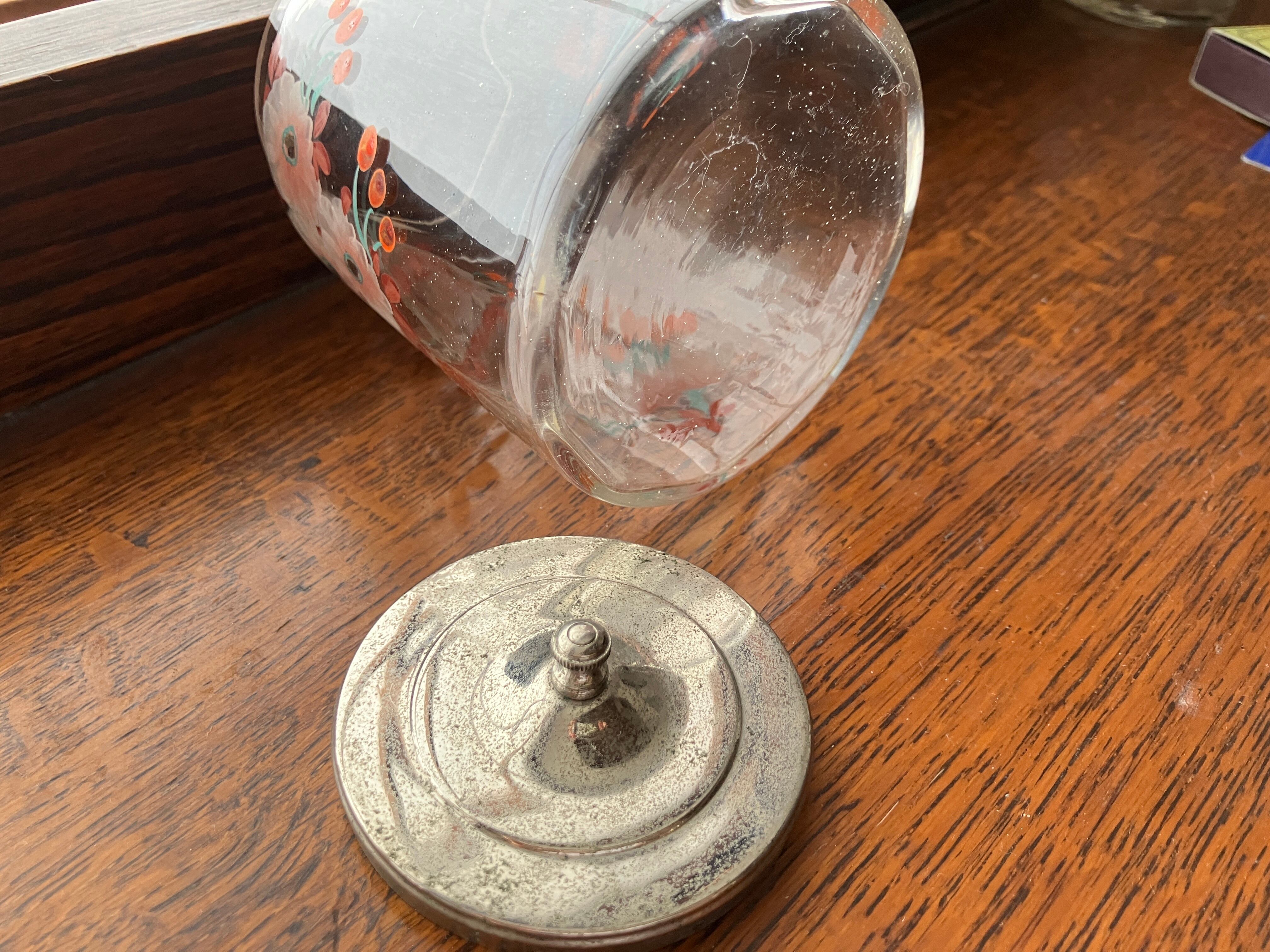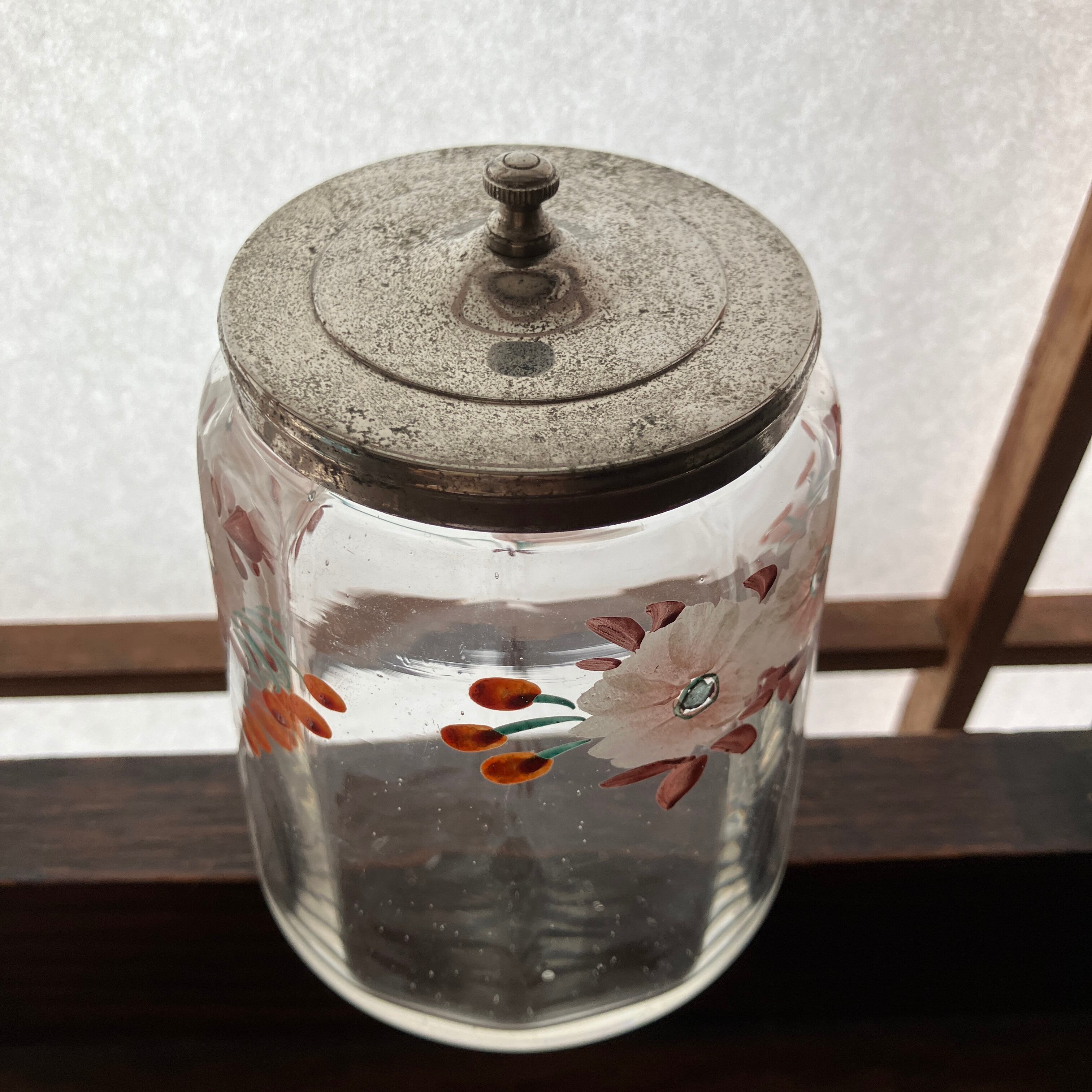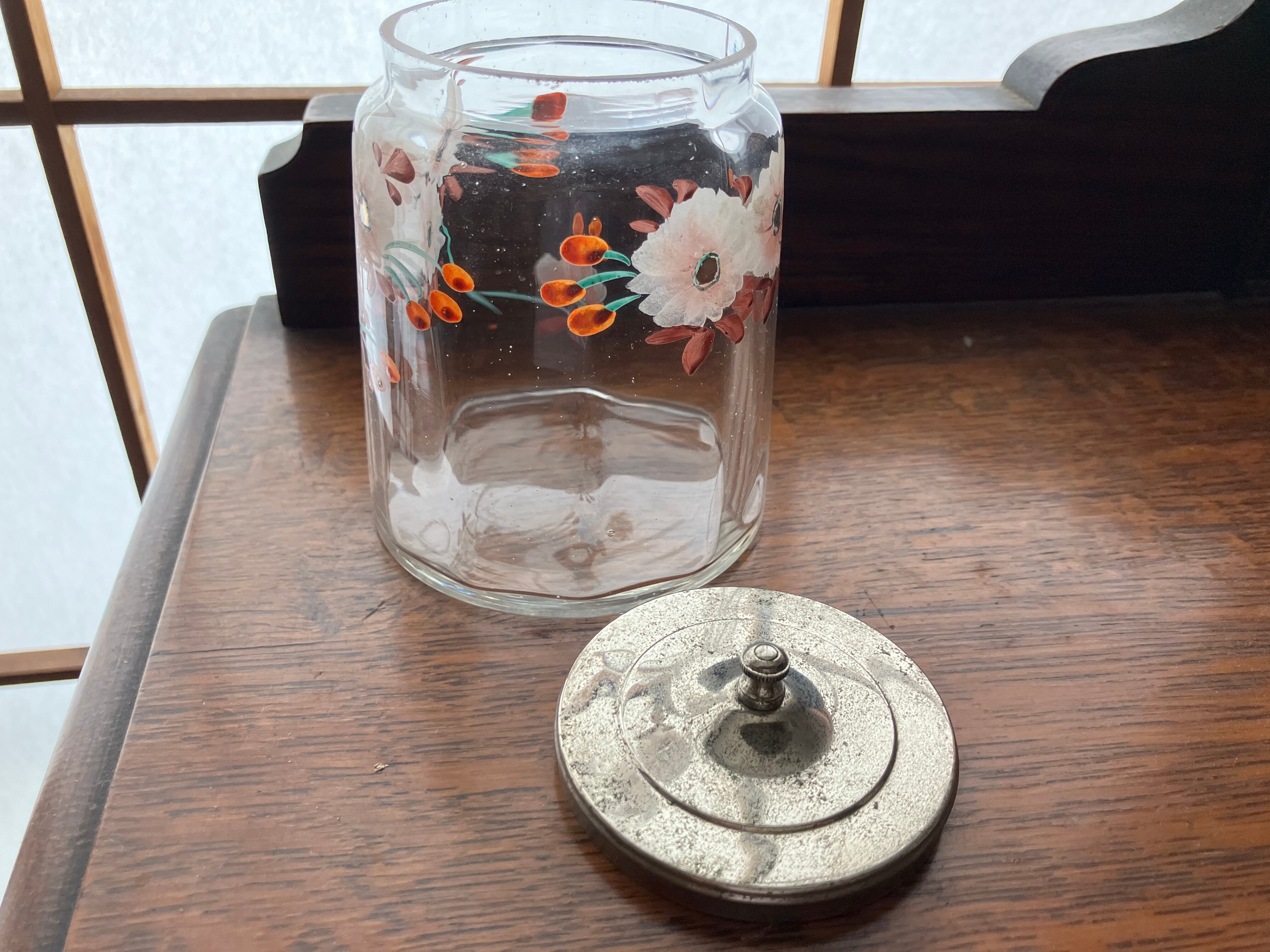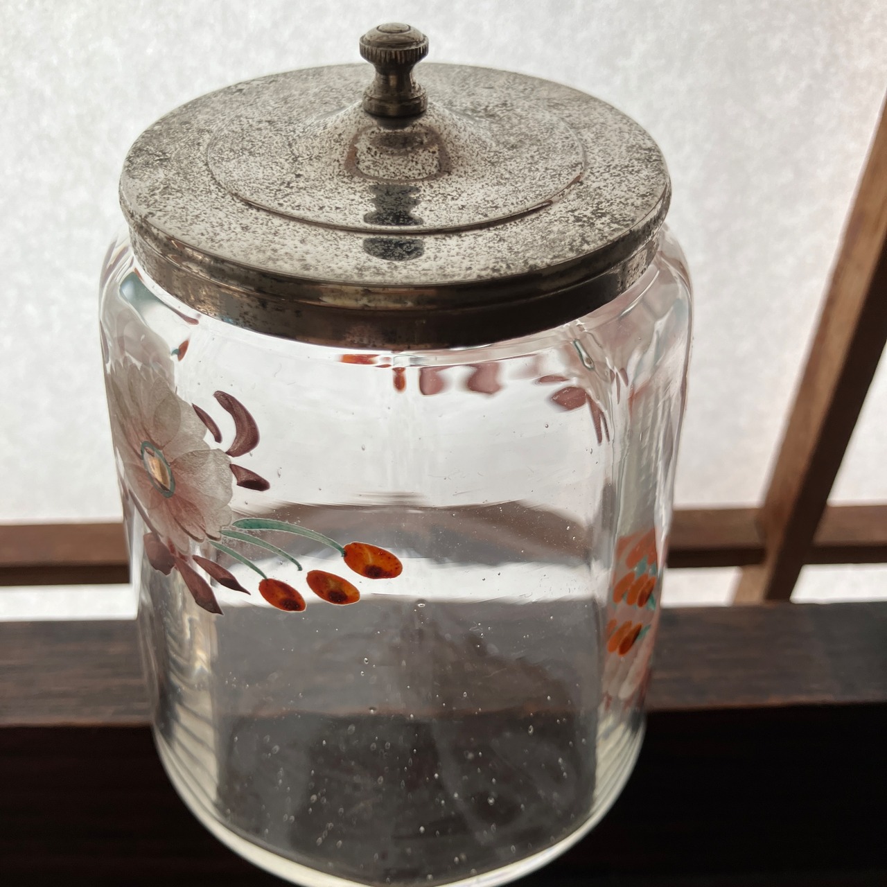 本体のガラスに傷や欠けはございません。ただ、金属製の蓋に少し錆が出ています。時代を経た品物にしては、状態は良い方だと思われます。